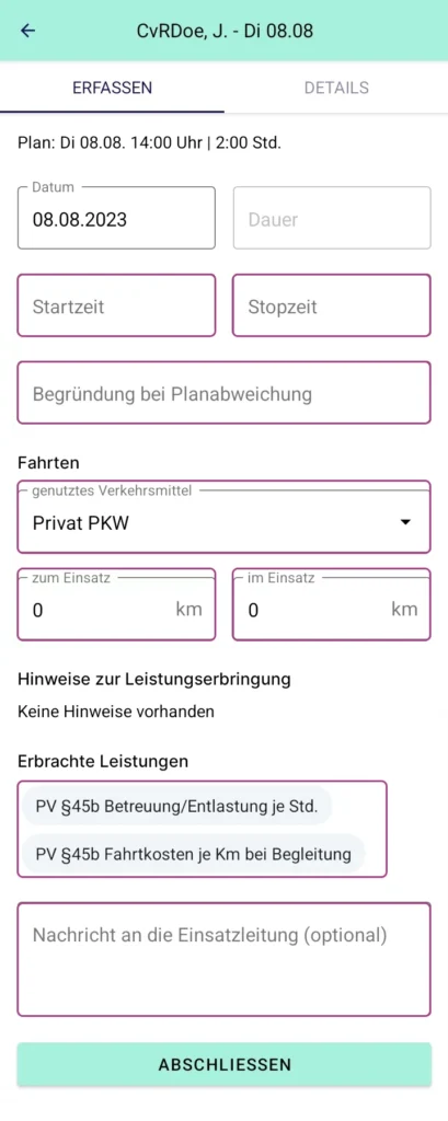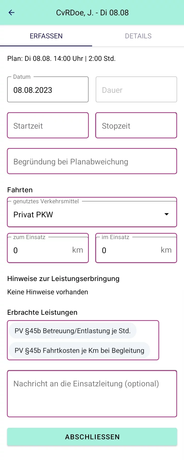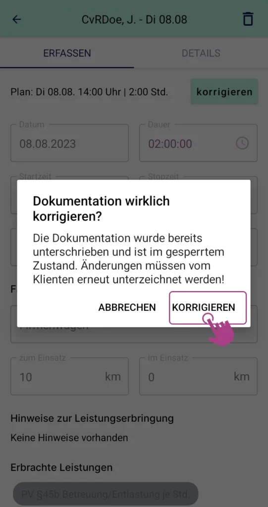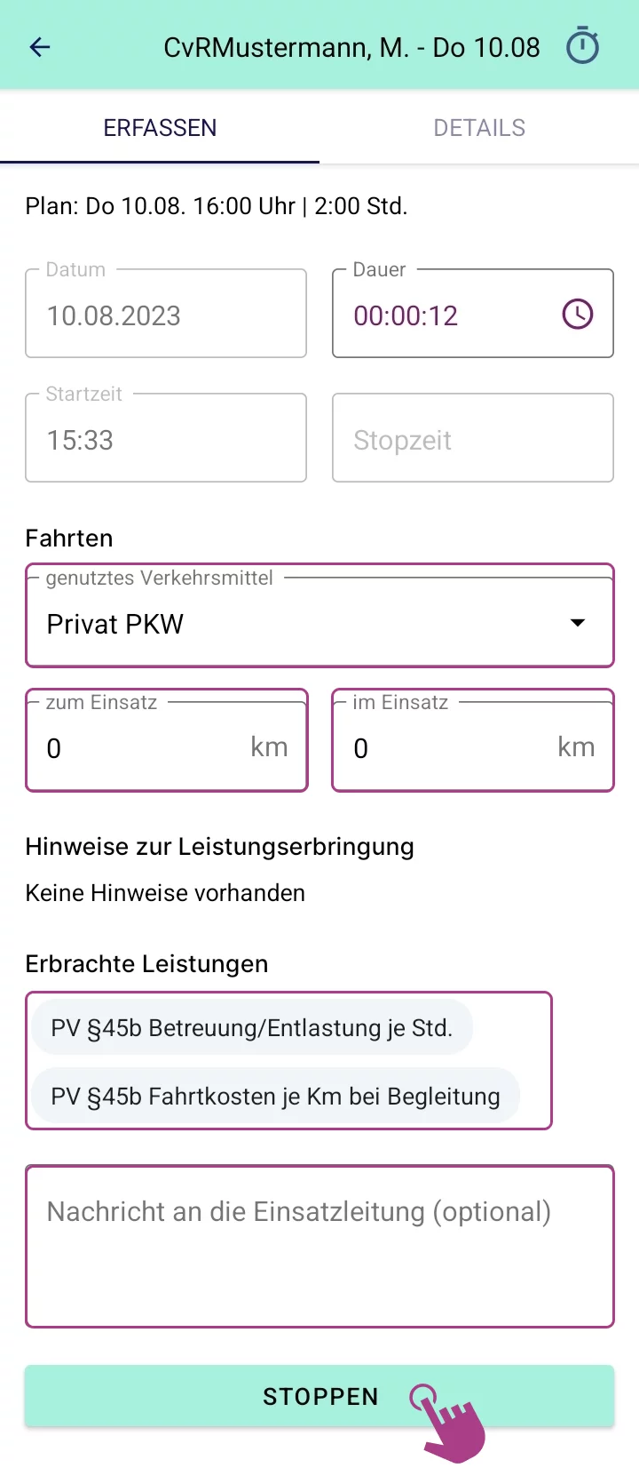 Nacherfassung eines Besuchs mit der Stempeluhr: